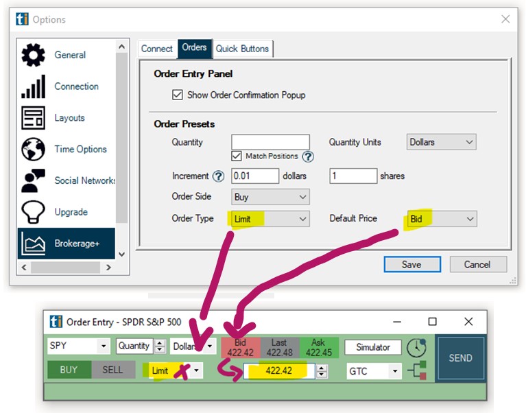 The Order Maximum option is a fail safe against user error. It enables you to limit the size of your position. When a maximum in Dollars and/or Shares is set, orders will not be submitted if they exceed your set maximum.